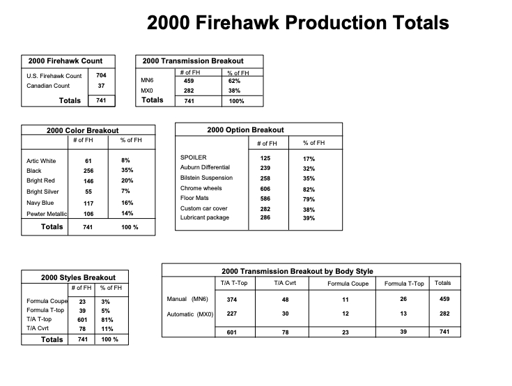 The SLP Firehawk was truly a rare car to enter the F-body fold. In 2000 only 741 were ever brought to North America with only half of those being a 6 Speed manual transmission. Only 61 were made in Arctic White making this an especially rare combo.