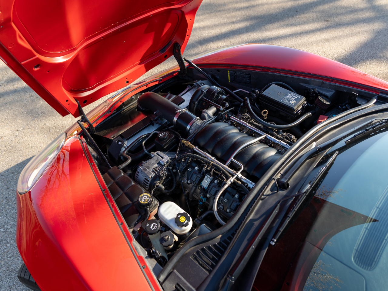 Tuned on E85 fuel this red beauty cranks out over 700whp or 800hp at the crank! Outfitted with OEM ZR1 Widebody panels this car not only looks the part but puts down neck snapping power. So have your cake and eat it too for a fraction of the price.