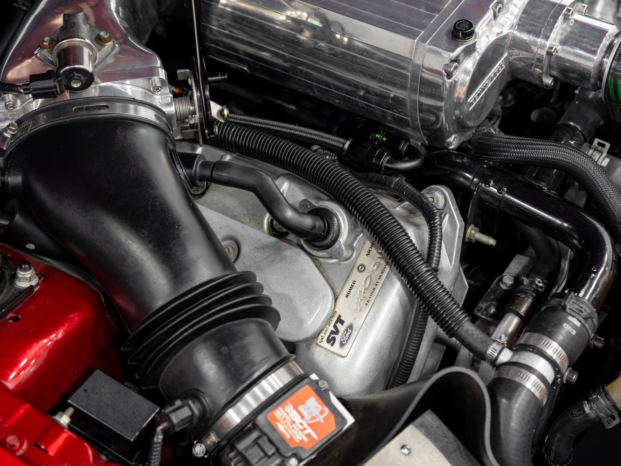 Finished in stunning Redfire Metallic, this 2003 SVT Cobra has only 23,000 original miles and has been professionally built to produce an impressive 670 wheel horsepower on E85, all while being exceptionally well cared for. This is not a hacked-together car—everything has been done properly and with attention to detail.